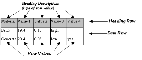 different value AND different units. If the row is a heading row, then the row values are strings defined